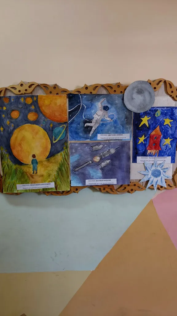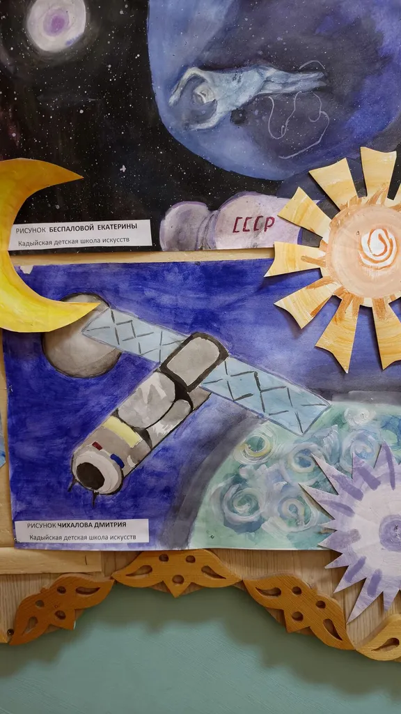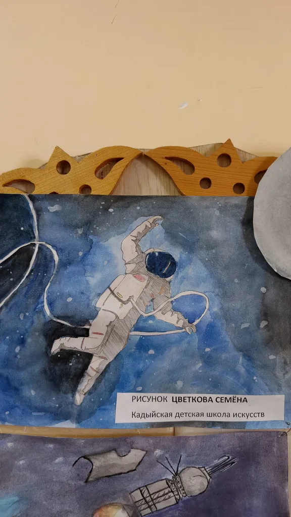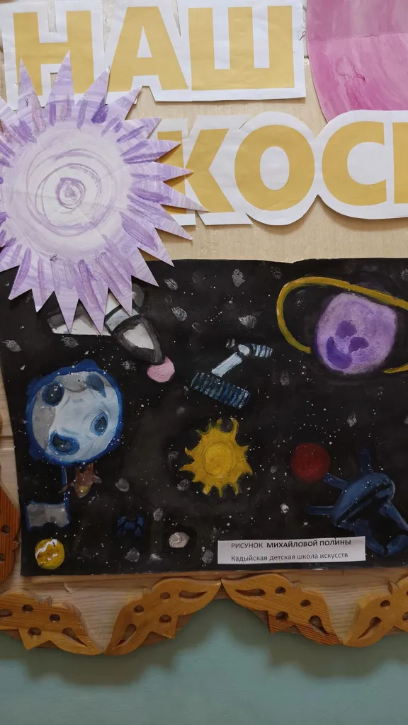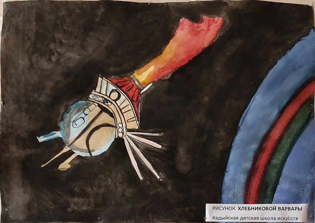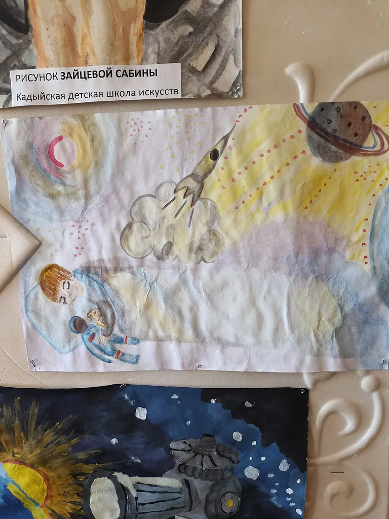 Ко всемирному Дню космонавтики, в рамках Недели космоса, в Кадыйской школе искусств открылась выставка рисунков "Наш Космос" и "Первому полёту человека в Космос посвящается".